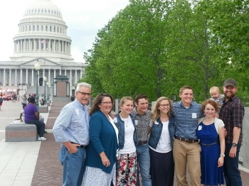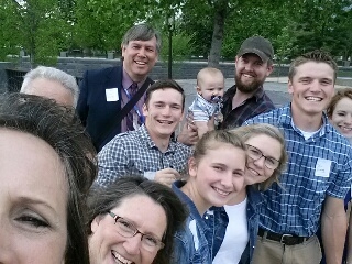 We had a special time when old friends came to tour Washington DC with Bernie and I. Since I was along I snapped a few pictures of Bernie with this family group, doing what he often does in DC, taking the them through the Library of Congress, into Thomas Jefferson's Library, and telling spiritual lessons in front of several statues in the Capital Visitor Center, among other things. This precious family we first met over 10 years ago, and it was wonderful to see them again and hear their stories of faith and hope. And this is only part of their clan, they also have several older children, several of them married, who weren't with them. I am working on my selfies so I included the first pic I tried to take of all of us, where only half the head of the father was showing. :/ I hope you enjoy a better picture of the family, with the capitol dome on the left. It was such a special time to see them again! The last time we saw them many of their children were small, now they are all teen or adults!