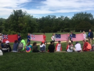 Middle: Three boys and a cannon at Gettysburg, Four flags presentation