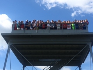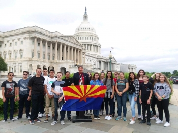 Top: Bernie, Arizona flag & future Members of Congress at the Capitol!, and a group of students on the Oak Ridge Observation Tower